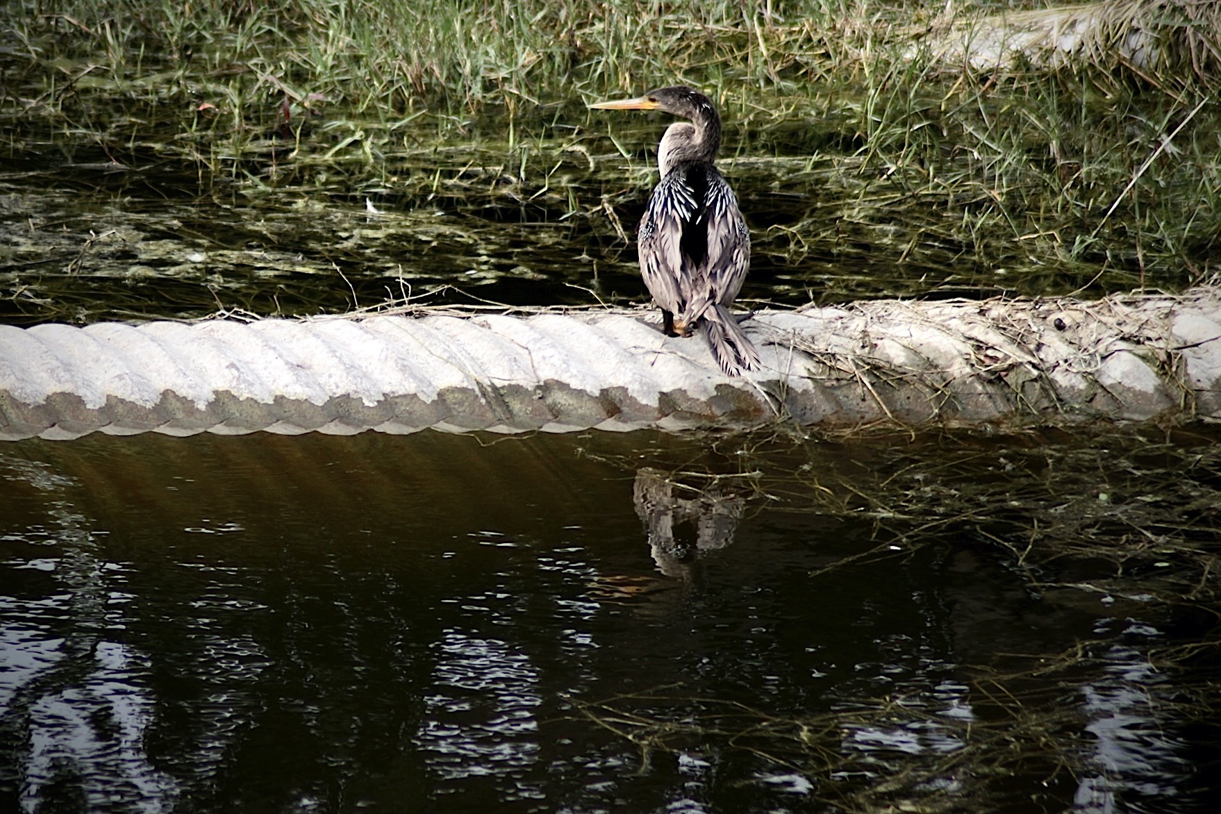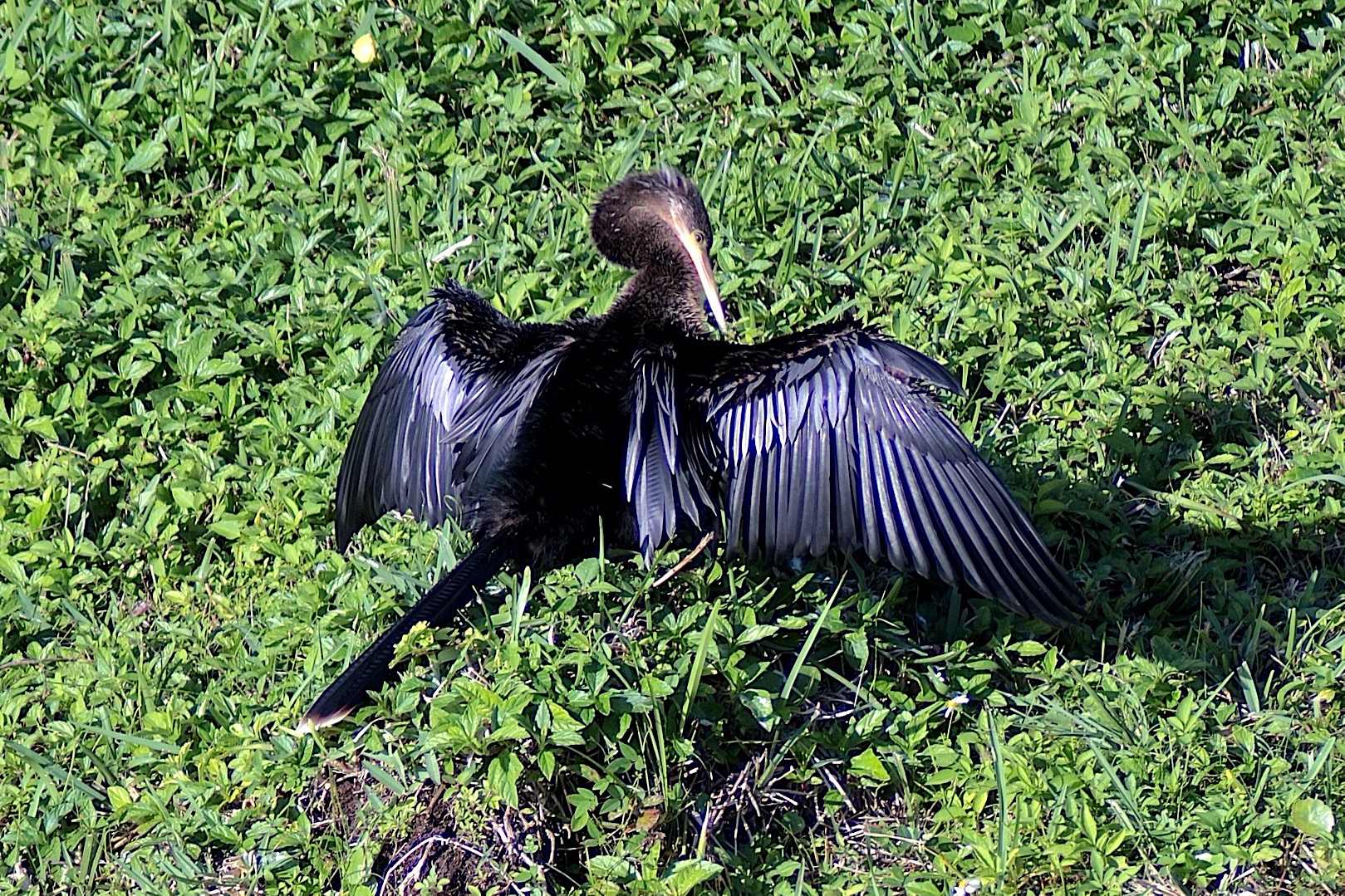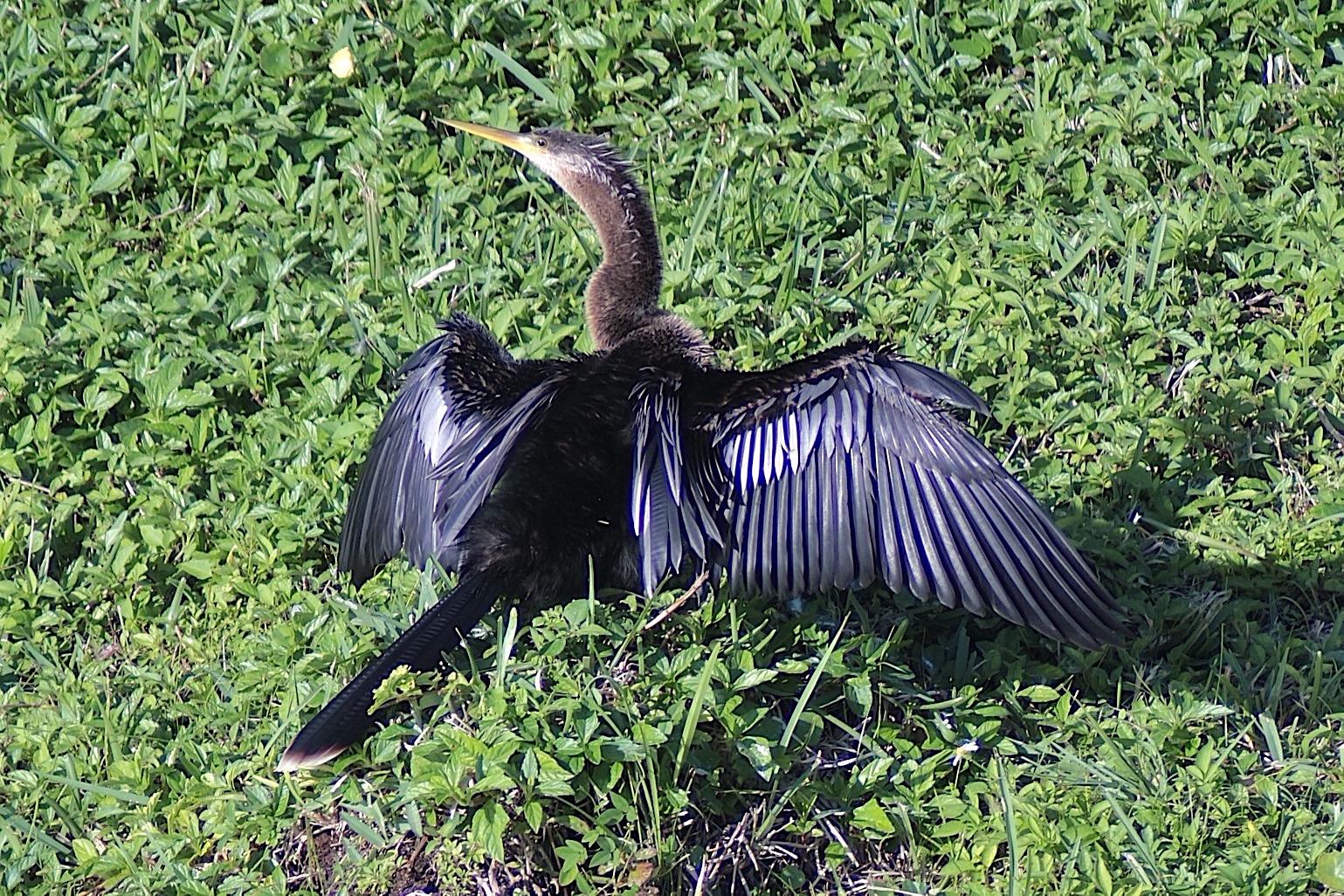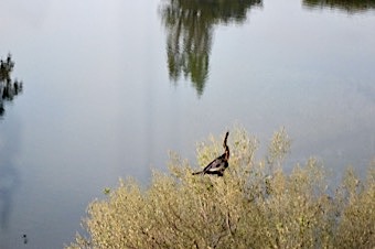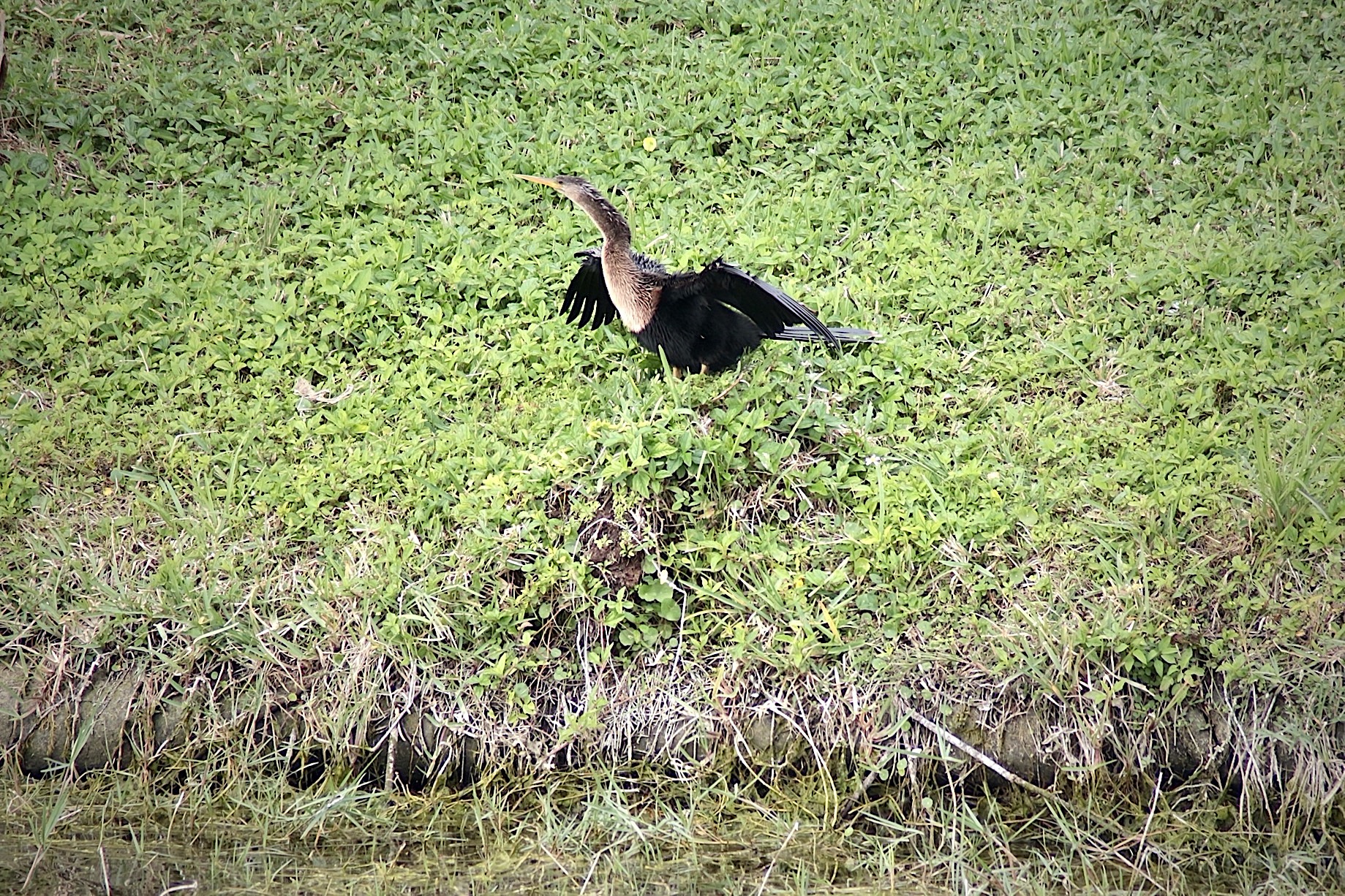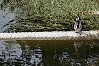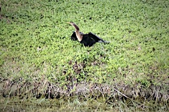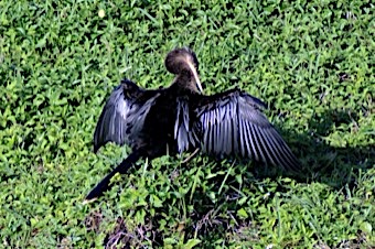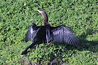 Long-necked "snake bird" found in wooded swamps, marshes, and ponds. Males are black with white on wing; females similar but with brownish neck and head.