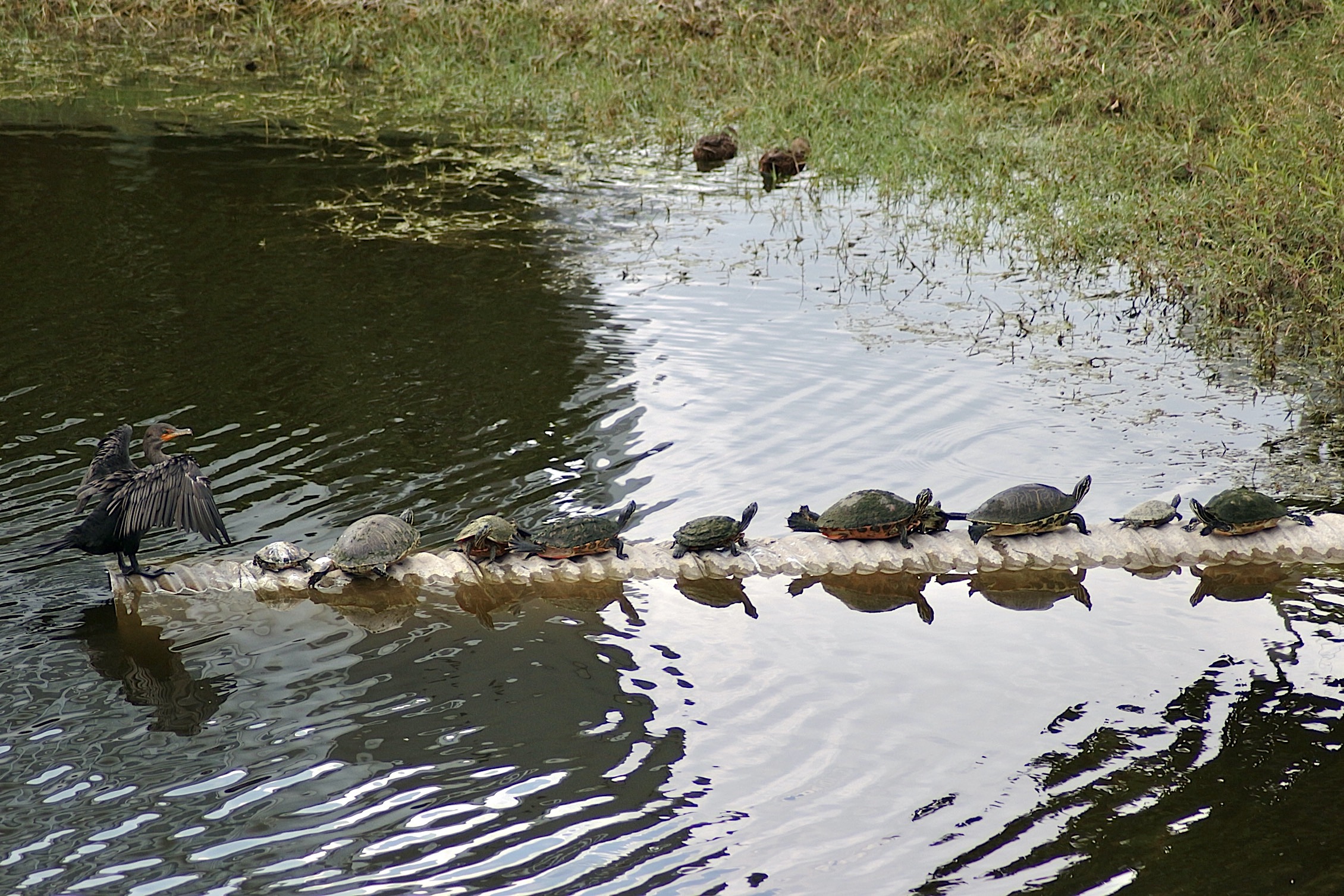 Can be in large flocks or solo. Most widespread cormorant across U.S. and Canada.