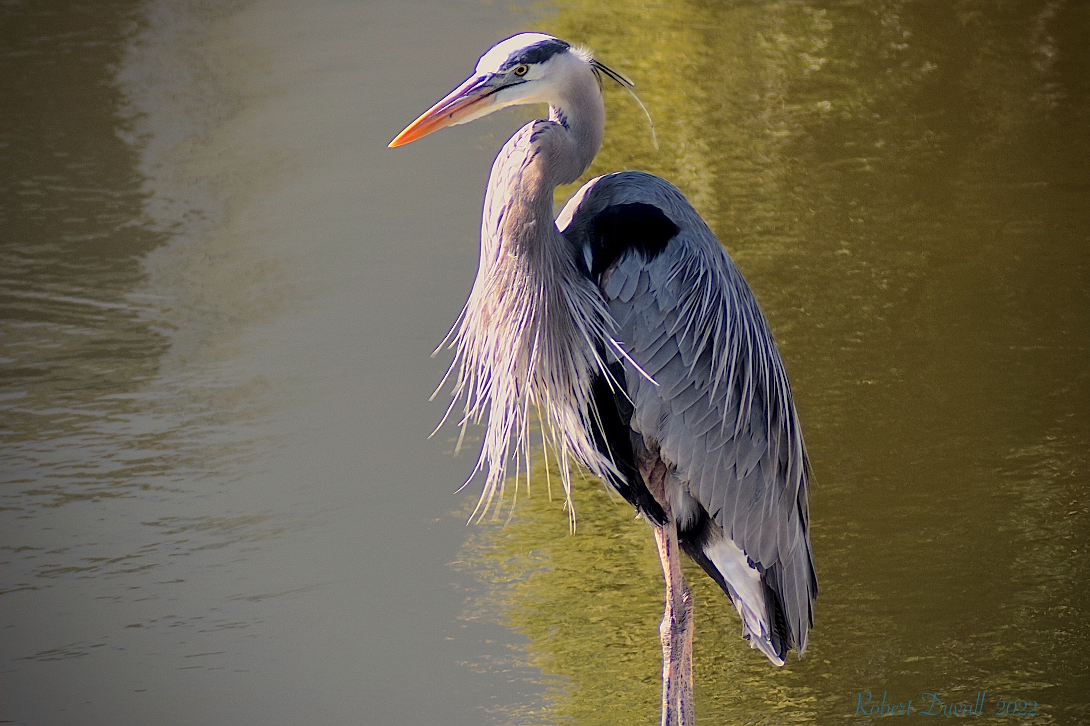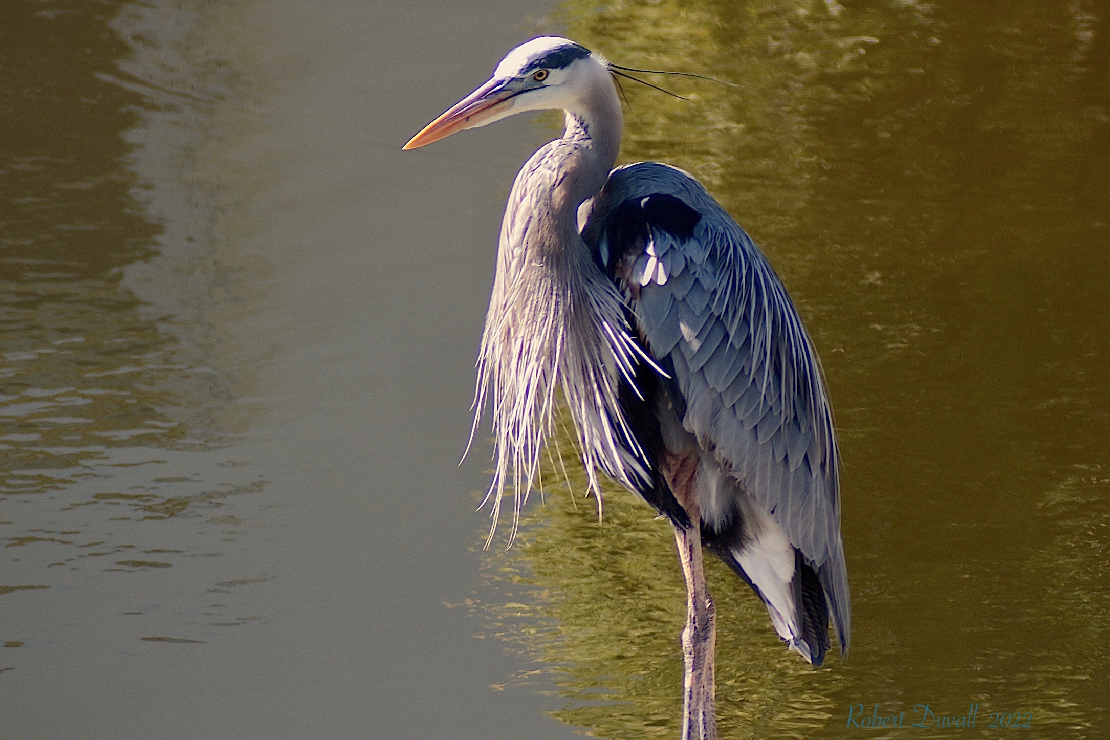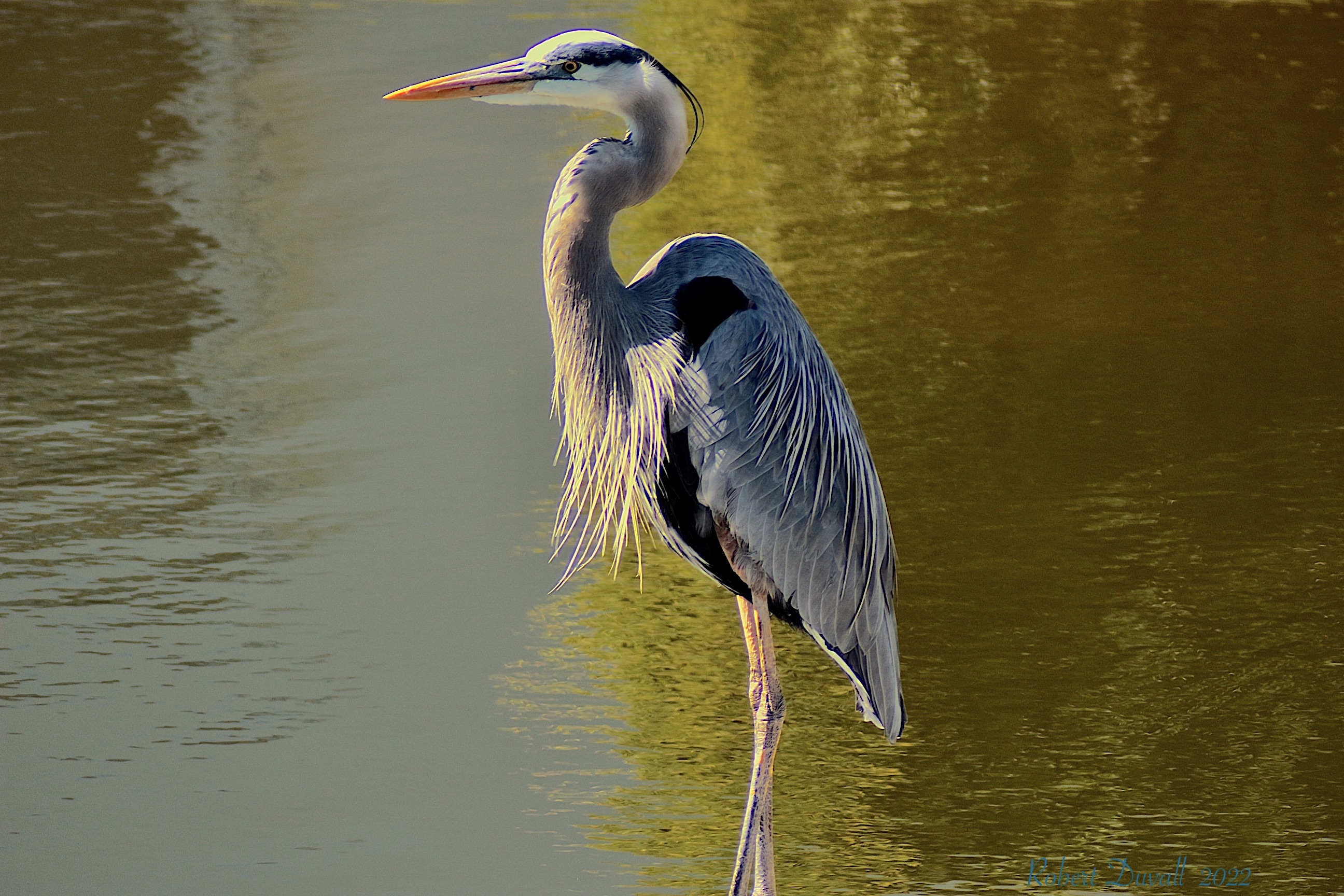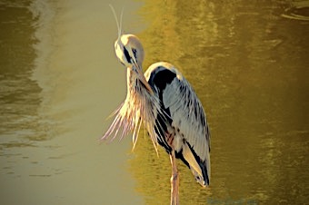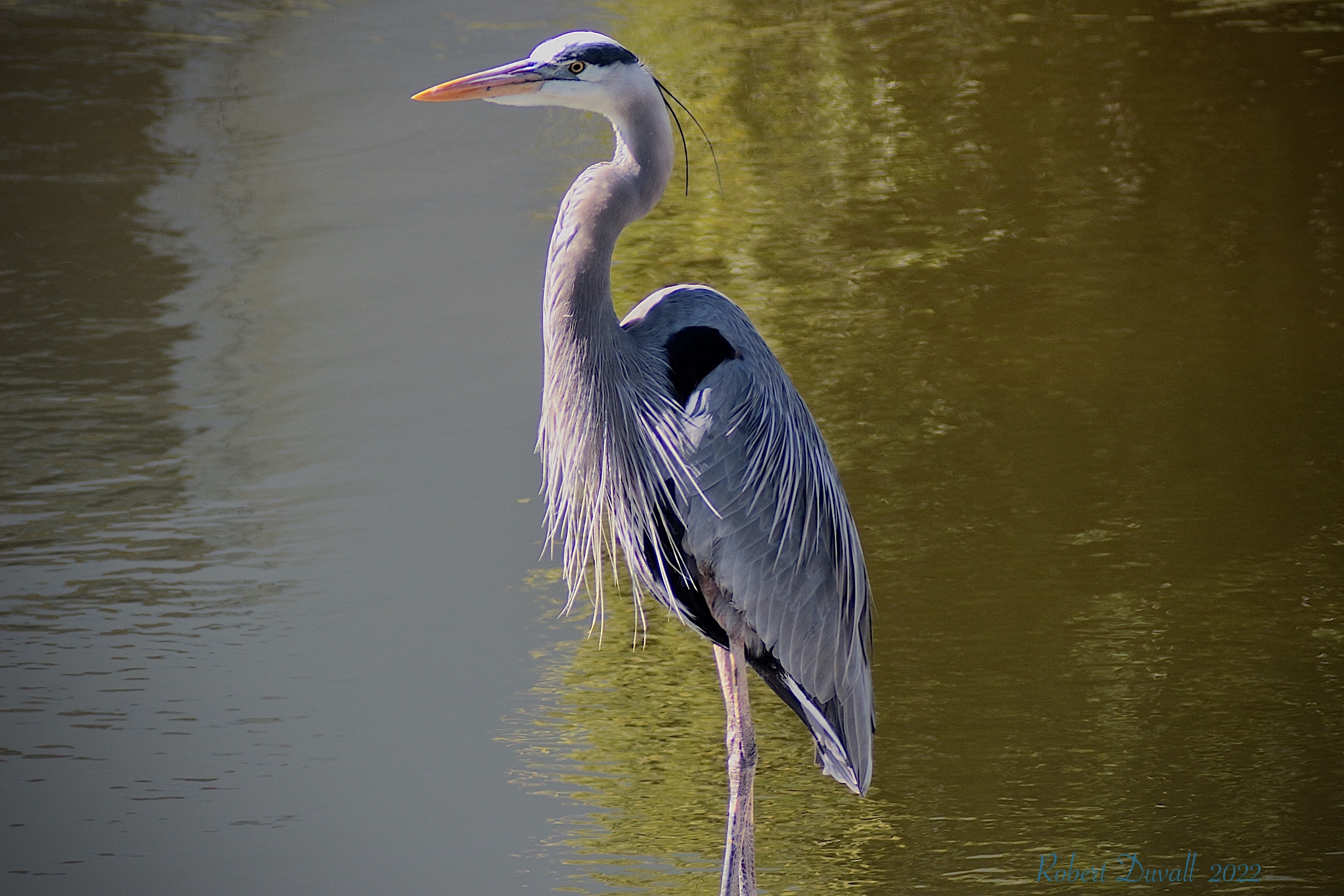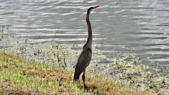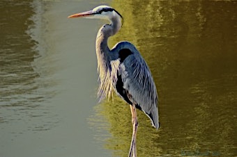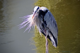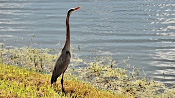 This stately bird with subtle blue-gray plumage often stands motionless as it scans for prey or wades belly deep with long, deliberate steps.